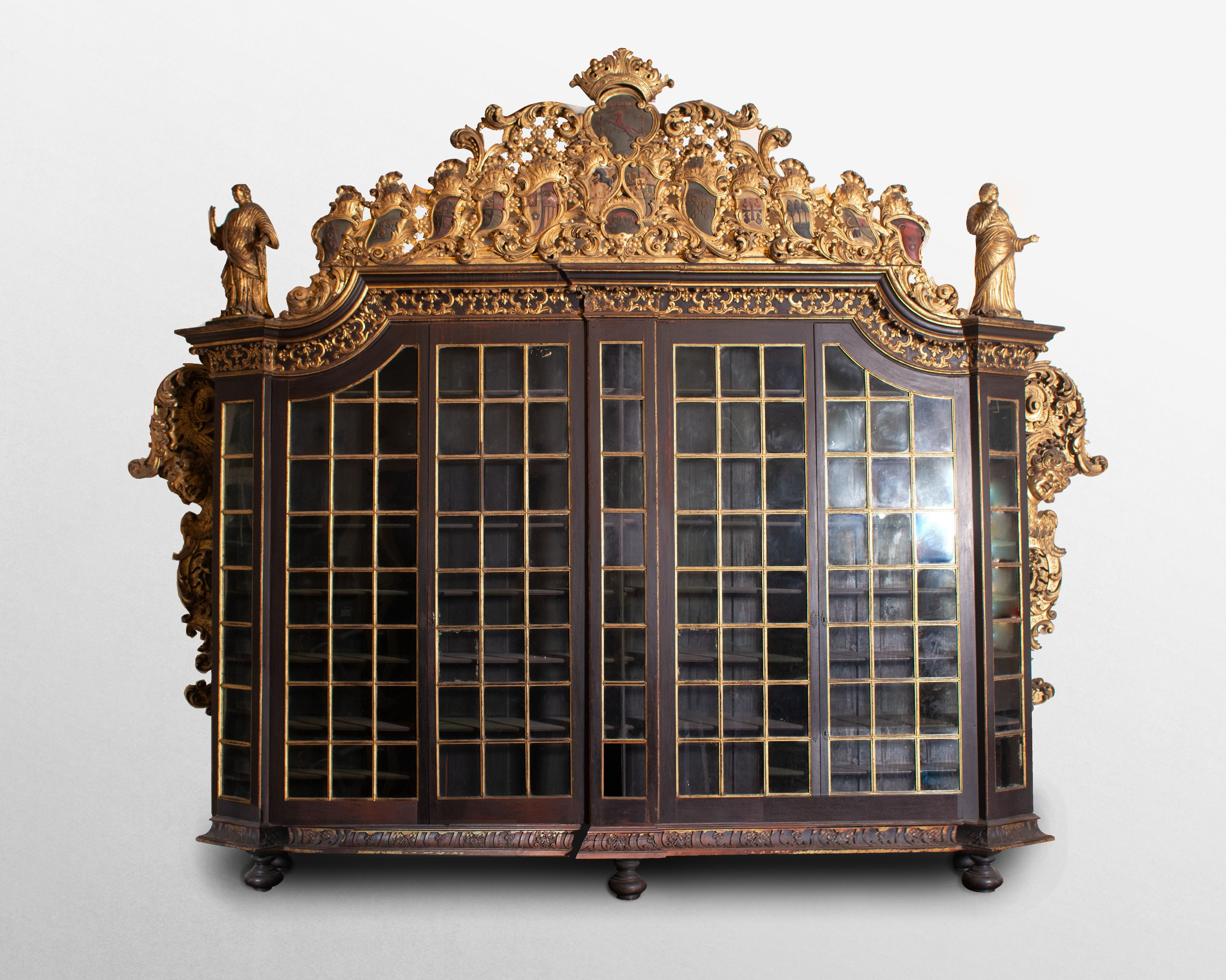 This monumental cabinet once stood in the Raad van Justitie (Council of Justice) of Batavia, where colonial judges deliberated over matters of law and governance. Commissioned in 1747 after the Council complained of lacking proper space for archives and a library, it was completed the following year- crafted from solid teak and richly carved.